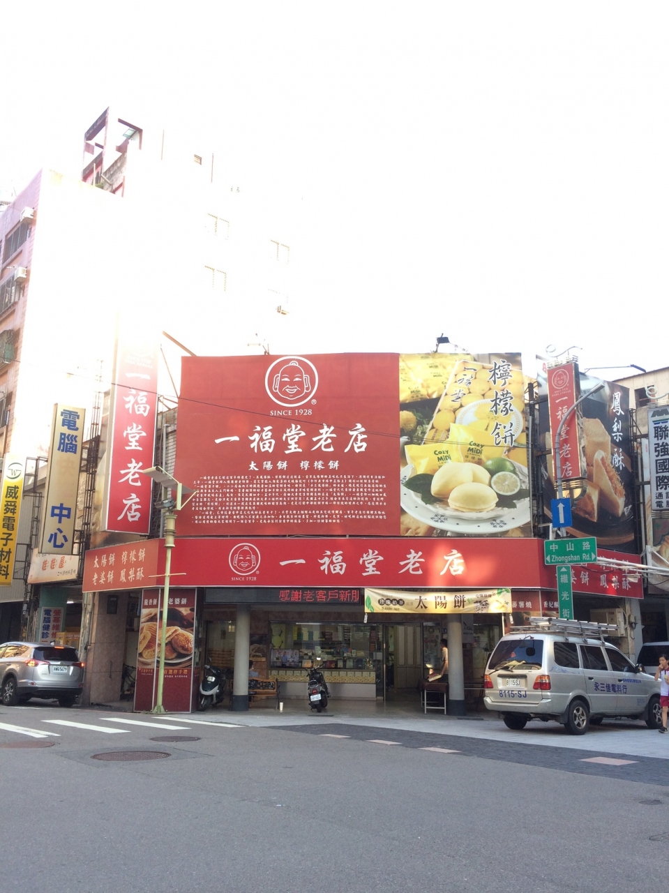 台中駅から徒歩で行ける距離にあります。赤い看板で、ロータリーの前にあるので目立ちます。スタッフは皆、熱心にセールスしてきました。太陽餅は、ボロボロこぼれてしまいました。レモンケーキのほうが食べやすかったです