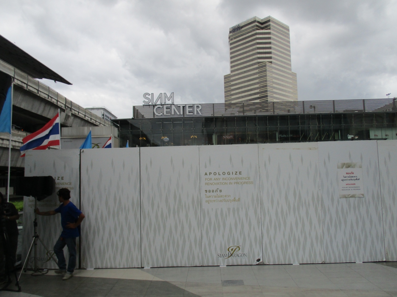 サイアムセンターM階の一部が改装工事中でした。バンコクでは良く見かける光景ですが、改装の壁も凝っています。通常でもサイアムパラゴンとの連絡通路は混雑するのですが、改装工事で狭くなっていたので、譲り合いながら通行していました。