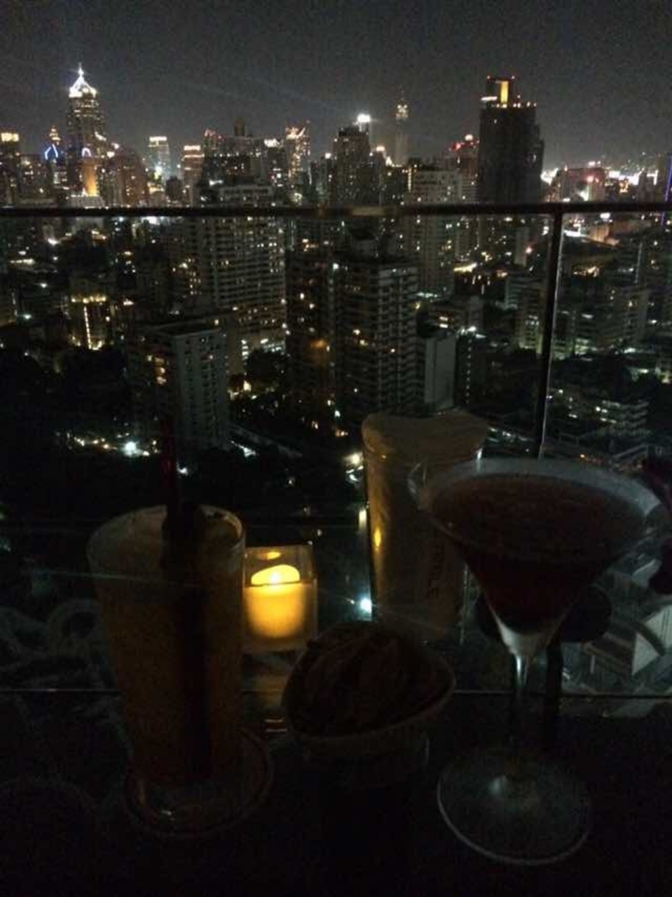 店内に長いテーブルがあるのが、お店の名前の由来です。でも、屋外の席のほうがバンコクの夜景が見えるので、そちらに座ってお酒を楽しみました。店内には無料WIFIもありました。お酒を2杯飲んで1時間くらいゆったりしました。