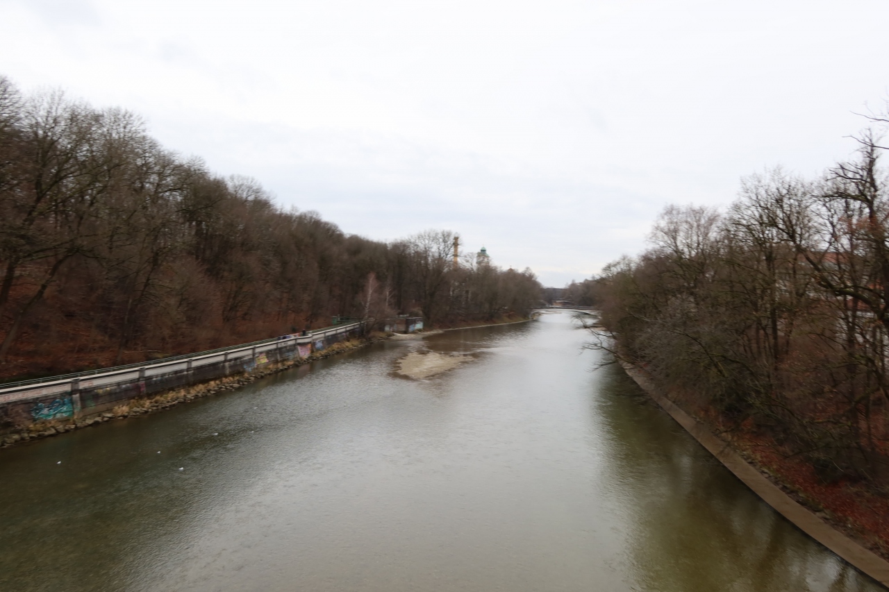 バイエルン州立民族学博物館からヴィラ・シュトゥック博物館へ行く途中、マクシミリアンシュ橋から見た川です。