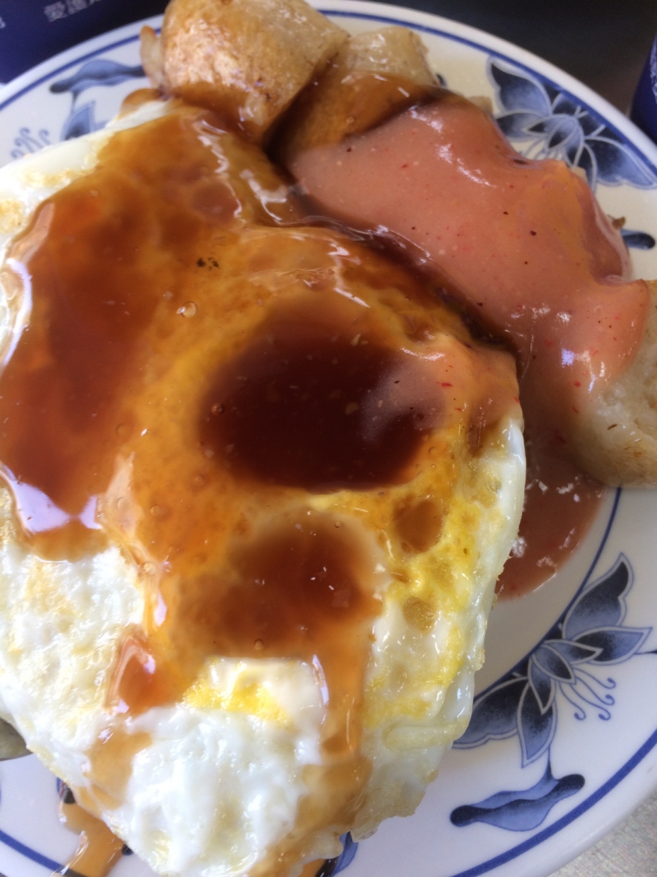 60元の全盛りを食べている人が多かったので、それにしました。スープには豚の血の固まりが入っているので、衛生的にやめました。卵焼きと、大根餅と米のソーセージにかかっているたれが絶妙でとてもおいしかったです。