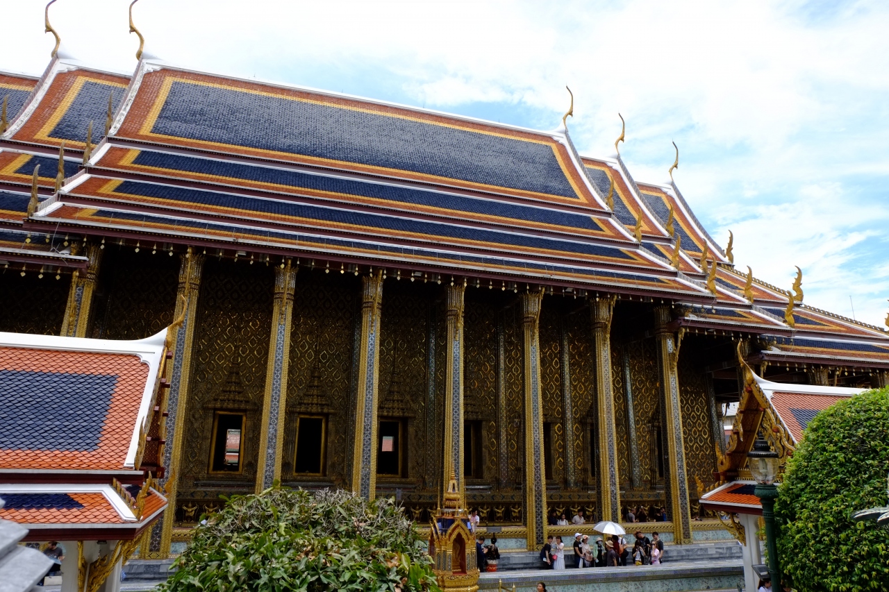 ワットプラケオの中にあるお堂です。金色の柱と屋根の形が特徴的な建物でした。