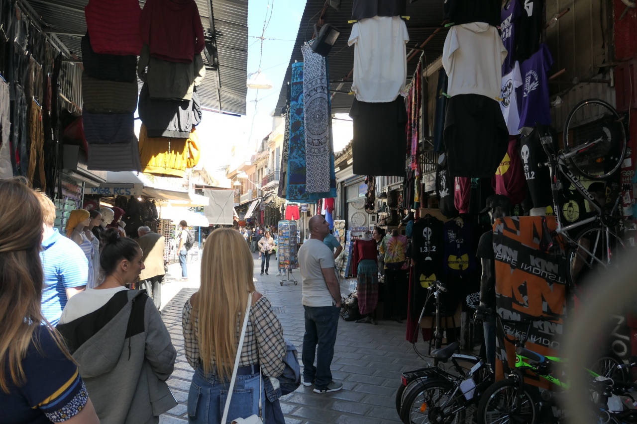 この場所は労働者階級の人々が多く住み、以前は治安も良くなかったようですが、近年になって状況が改善されて観光客の出入りも増加しているとのことです。安価にギリシャのお土産を買ったり、手軽に地元料理を体験するのに適した場所だろうと思います。ただ、我々が宿泊したホテル従業員の情報では、モナスティラキ広場やその付近ではスリなどの被害が多いとのことでした。買い物や夜間外出では、依然として注意が必要な地区のようです。