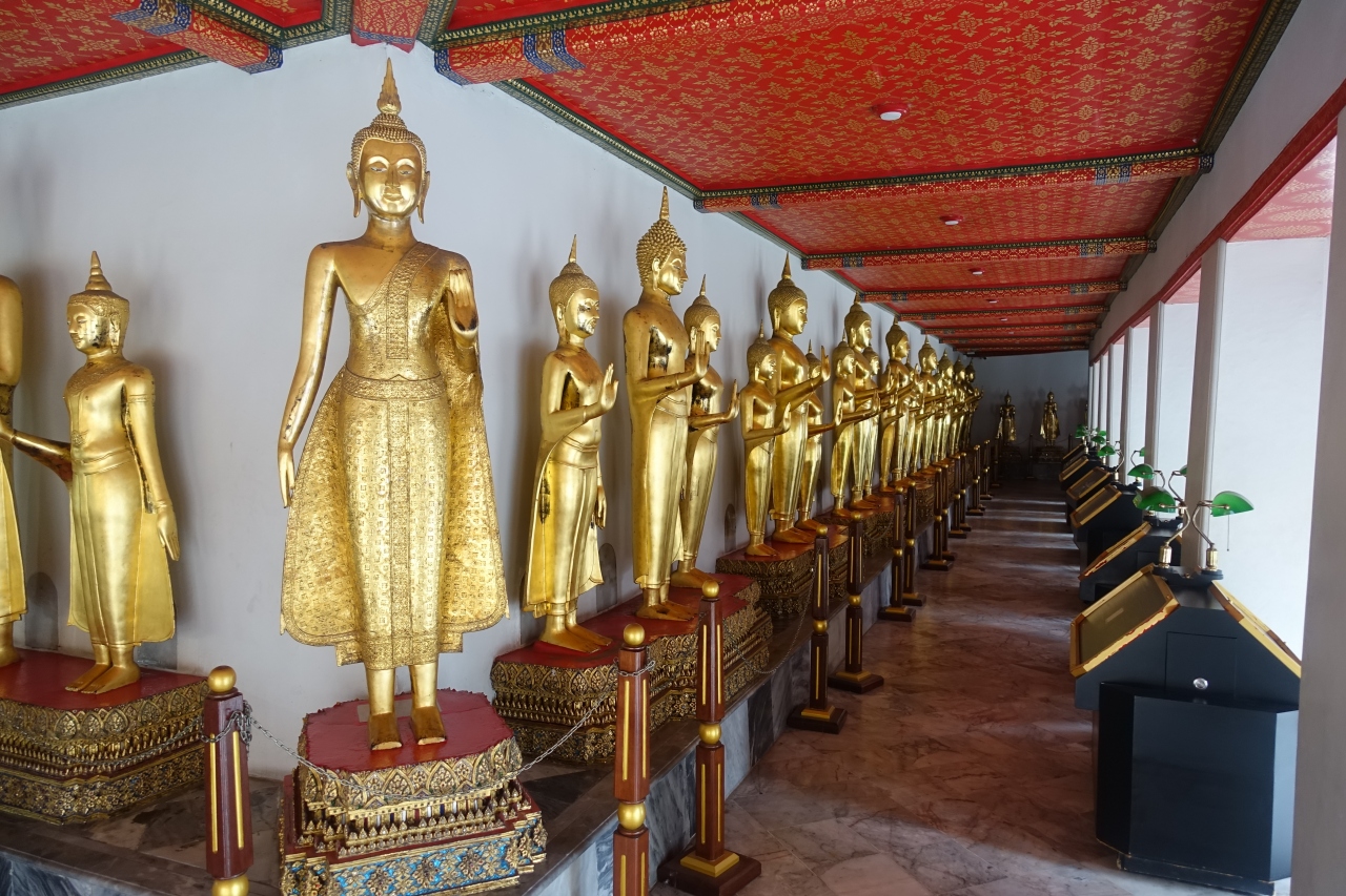涅槃仏が有名な観光の定番スポット。入口(チケット売り場)は南北それぞれに1か所ずつあり、ターティアン船着場から近い北側から入りました。MRTが延伸されたら最寄駅からは南側のほうが近いので、今後は南側から入る人も増えそうです。拝観料は100バーツ。窓口で1,000バーツ紙幣を出して断られてた人がいたので、1,000バーツ紙幣は避けたほうがよいかと思います。