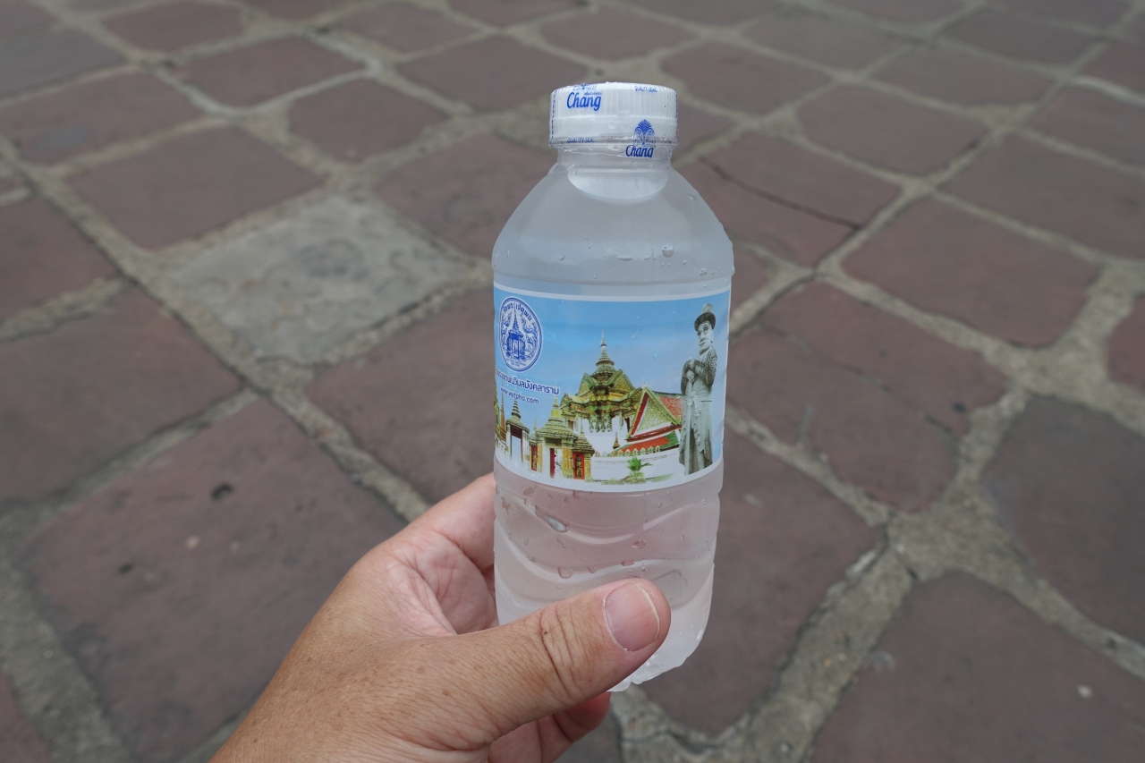 涅槃仏を見学後、チケットに付いている引換券でミネラルウォーターをもらいました。ちゃんと冷えてるのが嬉しい。ワットポーは涅槃仏だけではありません。仏塔、本堂、回廊なども時間が許す限り見て回ることをおすすめします。