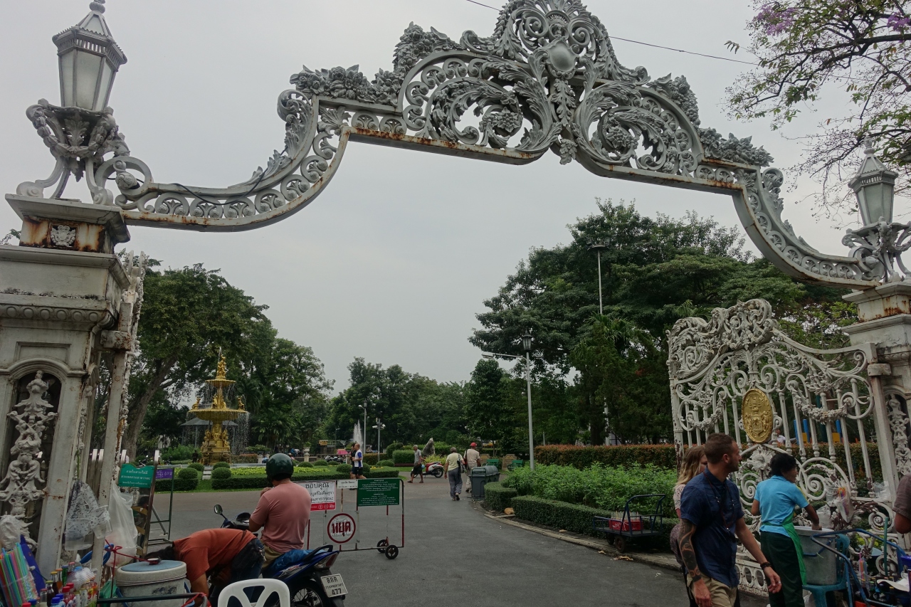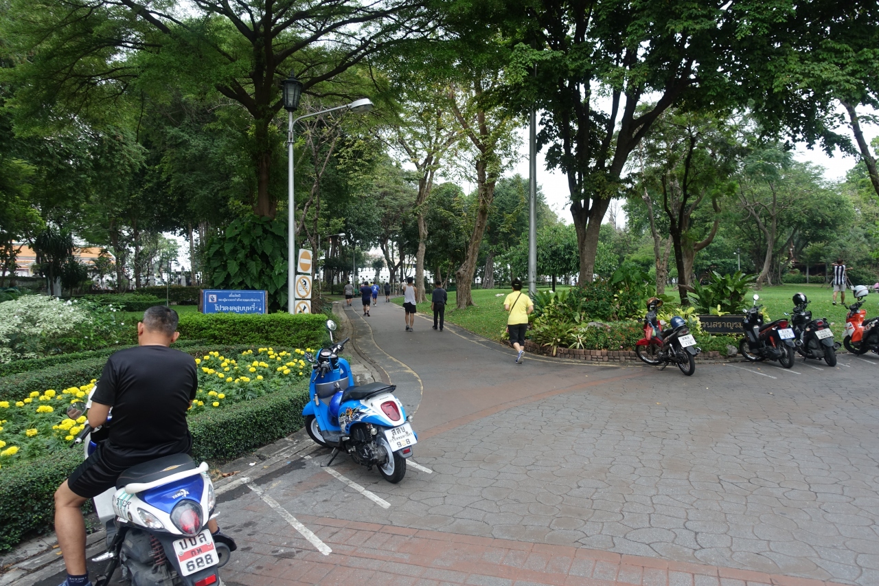 ワットポーの東側、交差点を挟んではす向かいに位置しています。入園は無料ですが、周囲を柵で囲われているため決まった出入口から入る必要があります。自分は南側の出入口から入園。出入口は立派な門を備えた造りなので夜間は閉まるのかもしれないです。