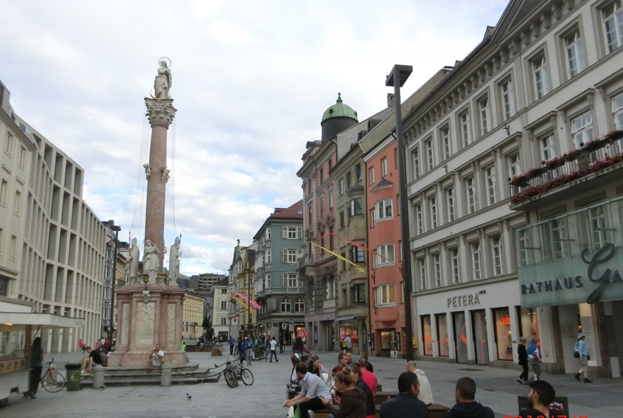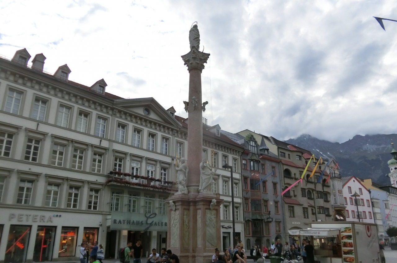アルプスの山々をバックにした聖アンナの柱の構図は、ガイドブックや絵葉書にもなっている美しい景色です