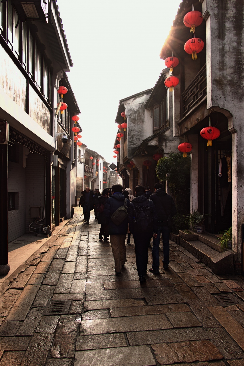 唐の時代(825年)に中国有名な詩人白居易が蘇州の刺史(長官)に任命され、町から虎丘までの川を整備したが、それは山塘河であります。その両側に道を作り、全長3600mの山塘街ができました。昔から賑やかな商店街でもあります。今は古い建築が多く残り、人気の観光地にもなっています。ゆっくり散策がお勧めです。