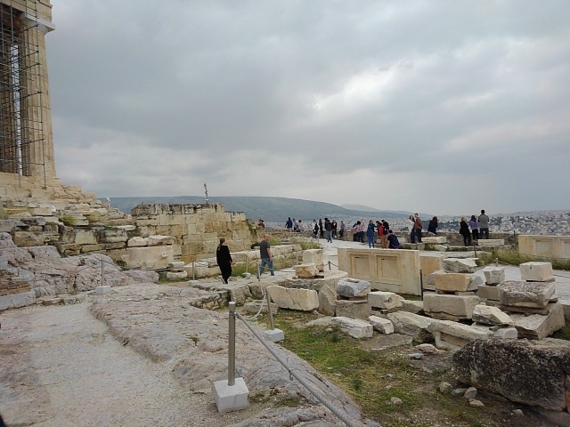 アクロポリスの丘の前門の右側で、アルテミスブラウロニア聖域の奥 パルテノン神殿手前くらいにあります。礎石しか残っていない状態です。カルコテケは5世紀に建てられた アクロポリスに奉納されていた青銅器を収蔵していた宝物庫とのことだそうです。かつての面影は感じられませんでした。