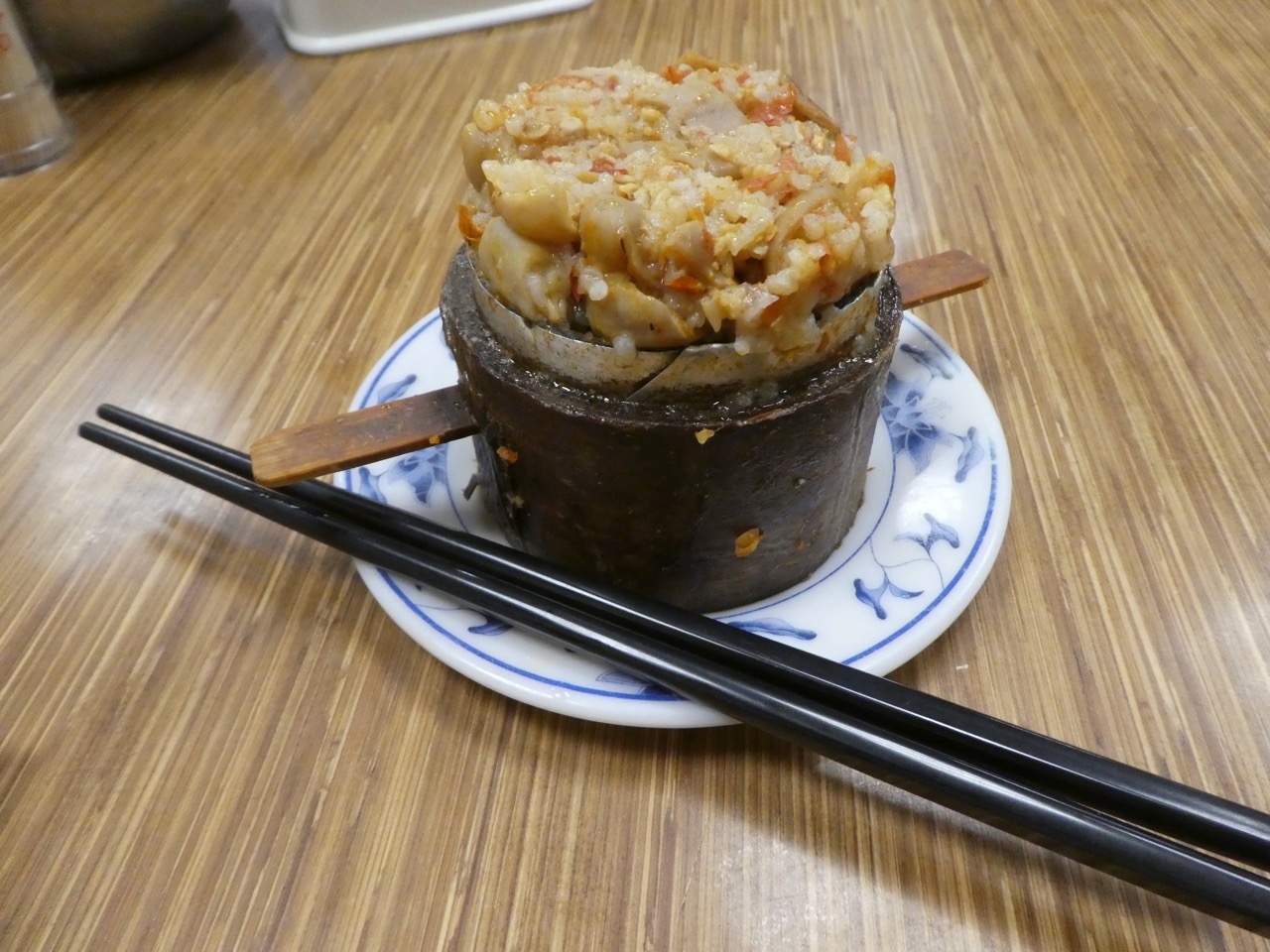 おこわですね。1人はこれを、一人は牛肉麺を注文。牛肉麺は値段がルーロー飯の5倍くらいしたわりに普通の味かなあ、という感じ。おこわの方が130元でなかなかコストパフォーマンスもよかったです。
