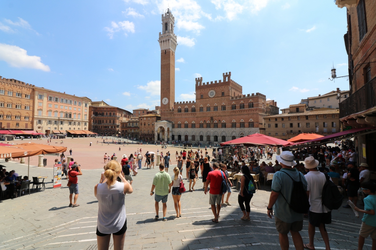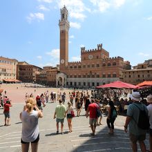 カンポ広場から眺めると、美しいゴシック様式の宮殿を堪能することができます。