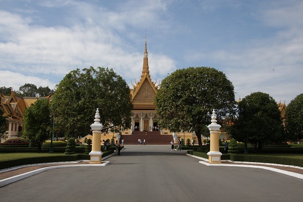 11:00~14:00が昼休みなのですが、10:30に着いたらもう閉まっていて入れてもらえませんでした。仕方なく門越しに即位殿を覗き、シルバー・パゴダは壁に阻まれて塔の上のほうしか見えませんでした。ワットプノンと並ぶプノンペンの名所なので、見学できず残念。