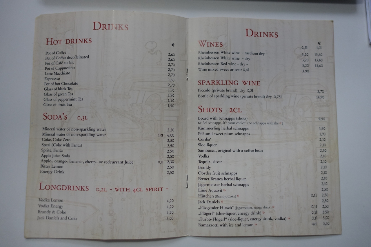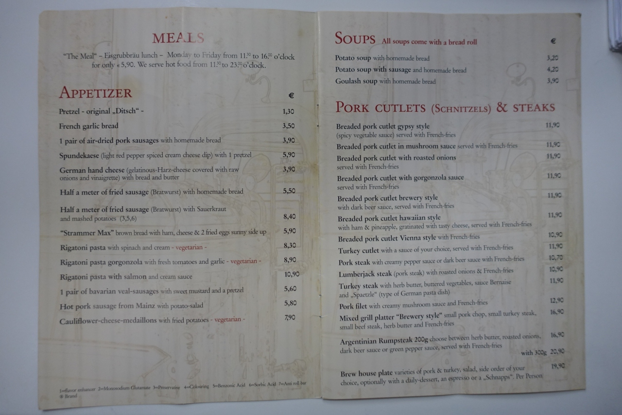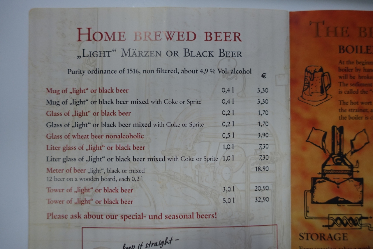 ビールはピルスナーやバイスを飲み比べて見たりもしましたが、どちらも飲みやすいビールでした。ハーフメーターブレストと言う5リッター入りのガラスの筒に入ったビールは4,5人で飲めばお値打ち感があります。
