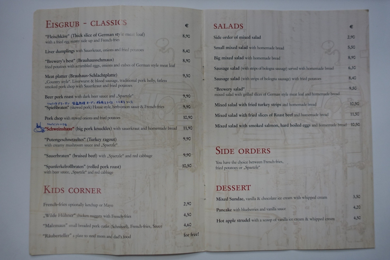 料理は肉料理を中心に注文しましたが皆美味しかったです。じっくりと焼き上げた豚のすね肉にナイフとフォークを突き刺して出されるシュバインツハクセ。豚のすね肉を骨付きのまま塩茹でしたアイスバイン。豚のスライスのオーブン焼きシュヴァイネブラーテンなどどれも美味しかったです。