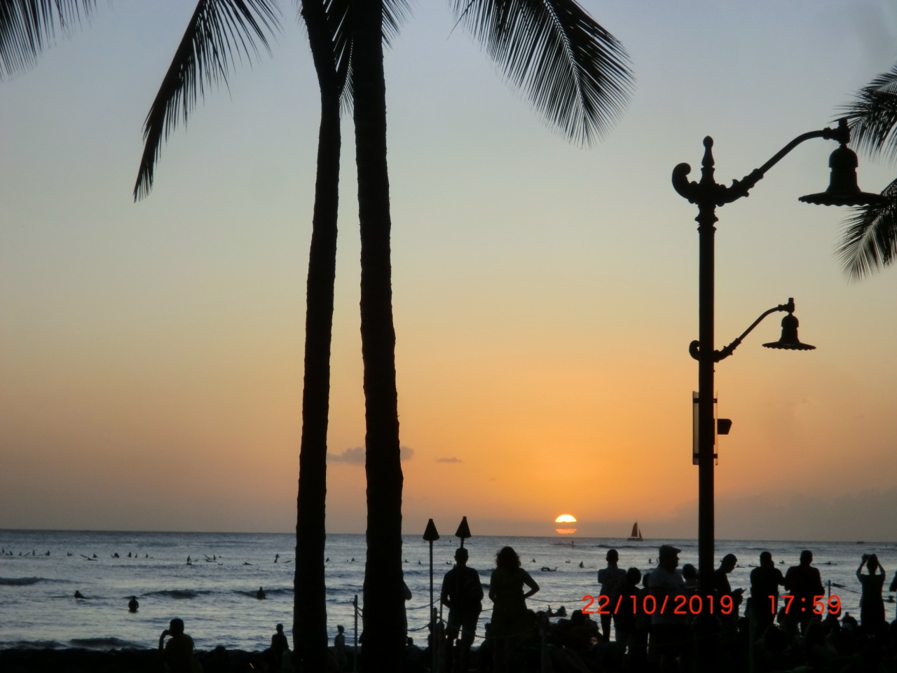 ここはワイキキ海岸の東部にあります。沖合20~30mに防波堤があり、ほとんど波が無位です。小さなお子様でも安心して海に入れます。(多少深いところもありますが)