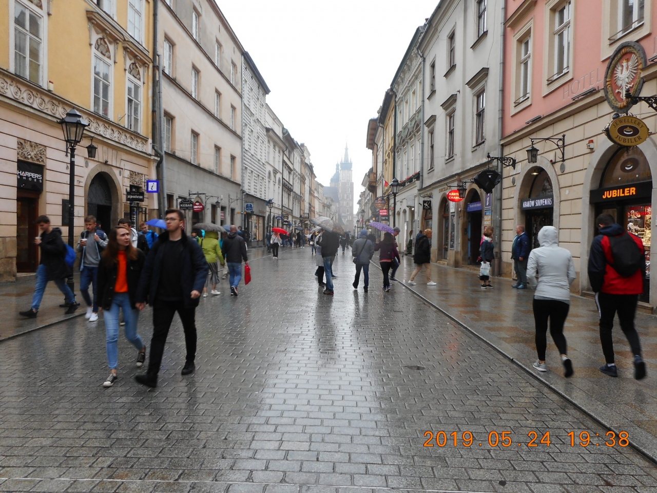 クラクフ旧市街ではメインの通りと言える通りです。バルバカンの旧市街側から始まり、真っすぐ中央市場広場東隣の聖マリア教会に向かって伸びています。中央市場広場の正面に行くにはシフィエンティゴヤナ通りで、フロリアンスカ通りは1本東側の通りになります。