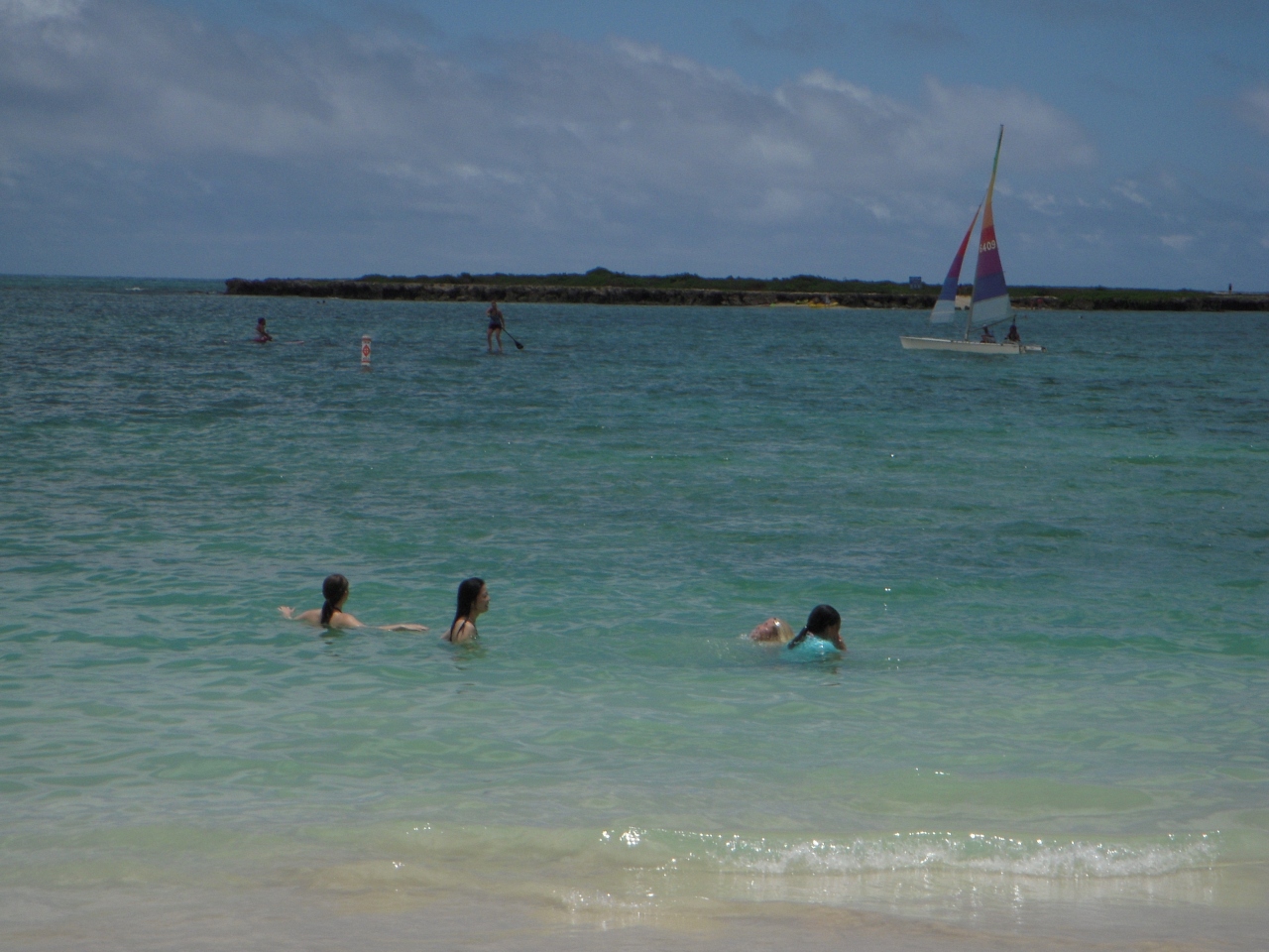 カイルアビーチは、エメラルドグリーンの海と青空がどこまでも続いており、波打ち際のエメラルドグリーンから、空の青にかけてのグラデーションが奇麗でした。