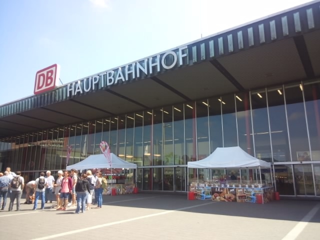 他のほとんどドイツの駅は、古いレンガなどの建造物なのに、ここは、近代的なガラスの駅です。