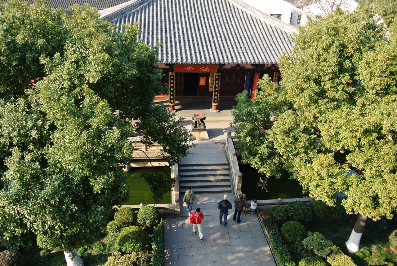 大晦日に「除夜の鐘」として有名な寒山寺、南北朝時代6世紀に創建の臨済宗の寺で、現存の寺は清代に再建したものだそうです。唐の詩人、張継の七言絶句「月落烏啼霜満天」で始まる「楓橋夜泊」にも詠まれたお寺です。