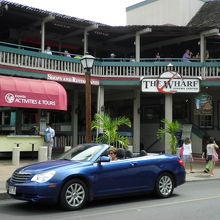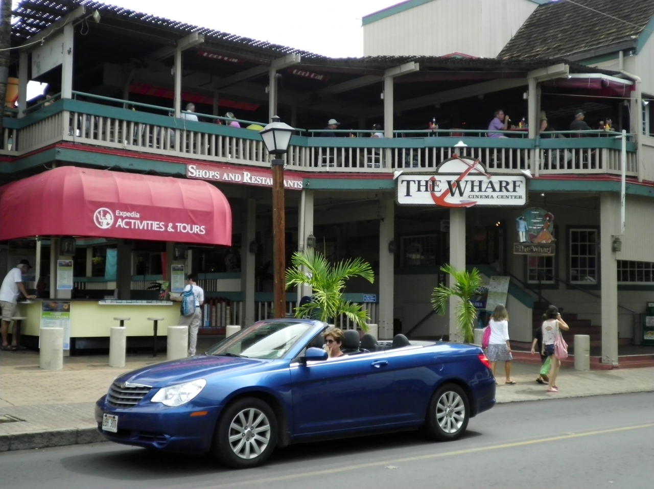 マウイバスが着いたザ・ウォーフ・シネマセンターは、ラハイナの中心部にあるランドマーク的な存在の古いショッピングモールです。