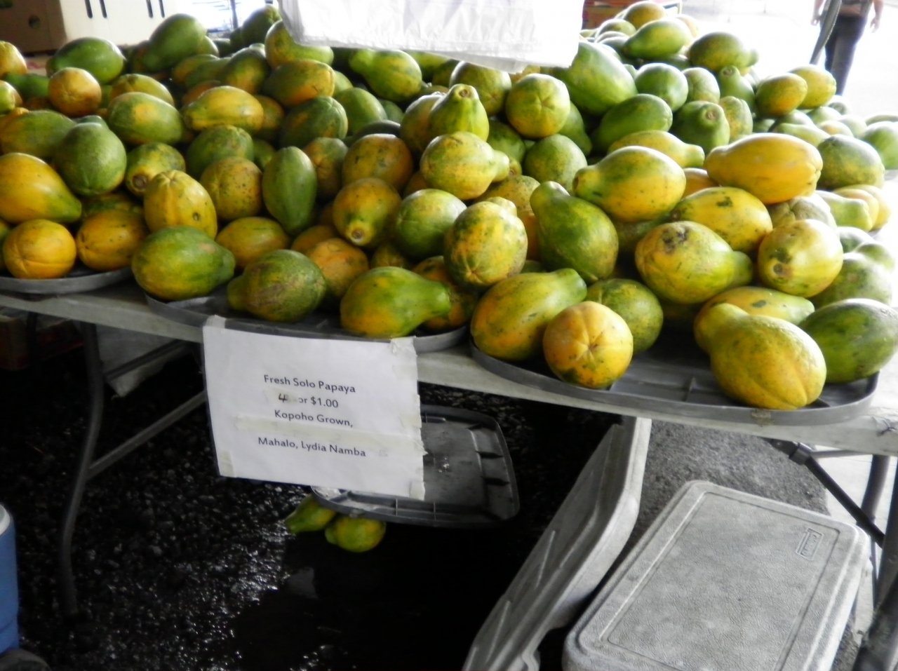 地元で採れた野菜や果物、トロピカルフルーツをはじめ、手作りのパンやジャムなどを売る店が200も集まるファーマーズマーケットで、水・土曜が店が充実してにぎやかだそうです。