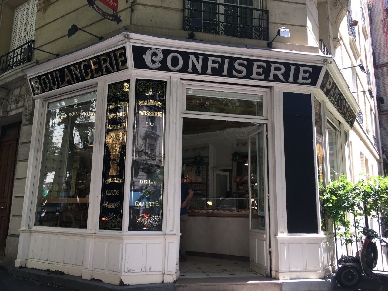 モンマルトルの坂道にあるパン屋さんで、レトロな建物が可愛いです。クロワッサンやバゲットももちろんですが、ケーキが美味しいです。ミルフィーユとレモンパイを購入しましたが、いずれも素朴ながらクセになる味わいでした。店内には、小さなカウンターのイートインスペースもあります。
