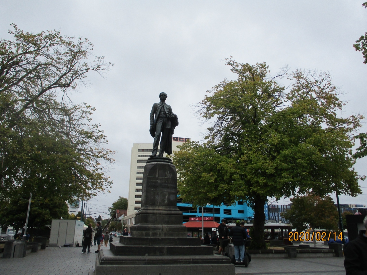 クライストチャーチ市街中心部、カセドラル広場にたつ像です。この像の人物、ジョン・ロバート・ゴッドリーとはどのような人物なのか知りませんでしたが、アイルランド、ダブリン生まれの政治家でこのカンタベリーの創設者だったそうです。また、この像は、ニュージーランドで最初に造られた人物の像だともいわれています。2011年の大地震で台座から像が落ちたそうですが、今は、元に戻っています。