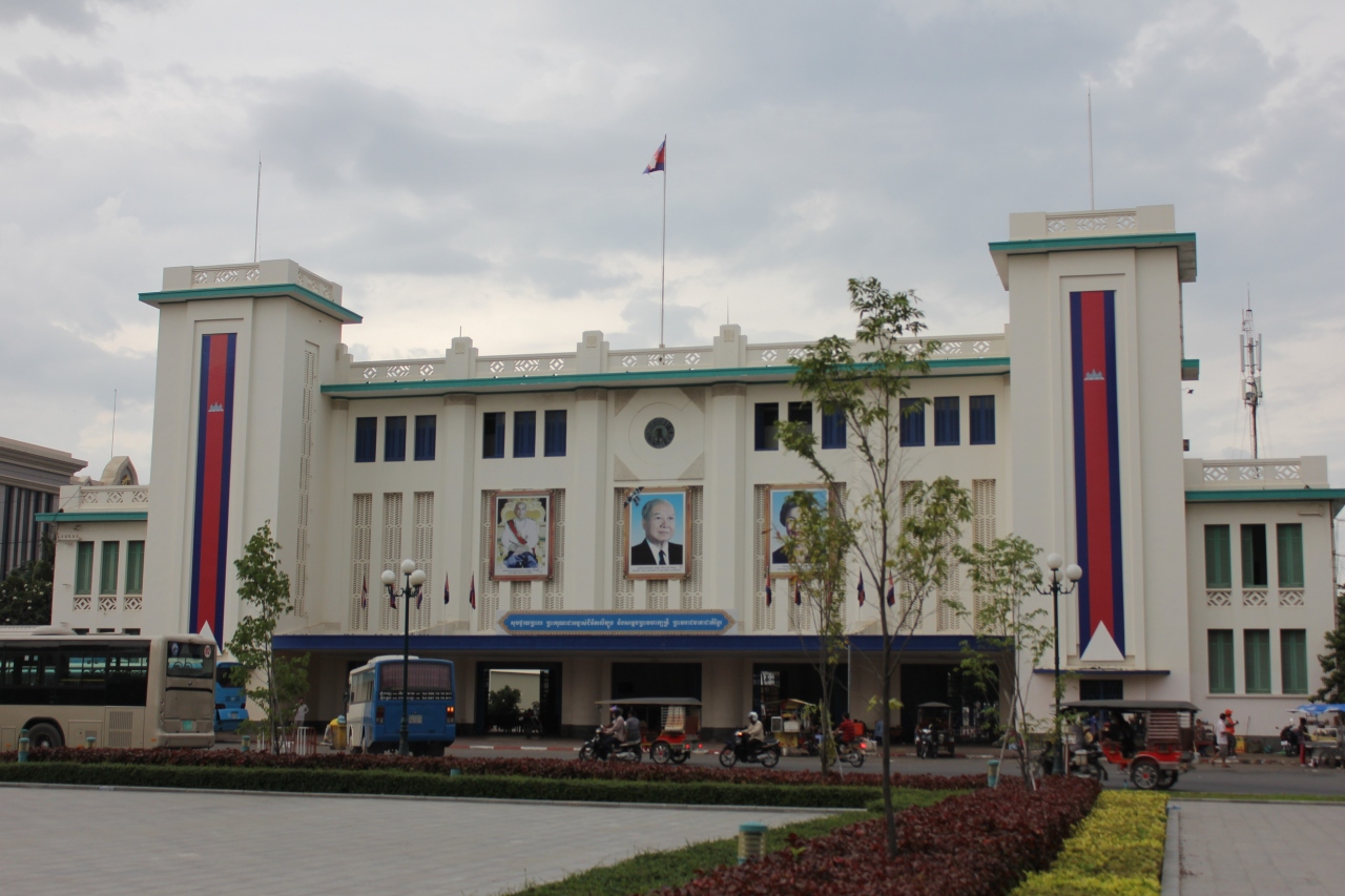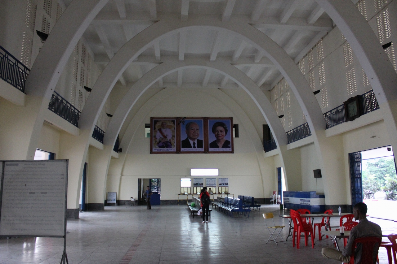 プノンペンからシアヌークビルへの列車に乗るために利用しました。運転時間帯以外はクローズされているようです。行き止まりの終着駅で、ホームでは車載車に車を載せる作業中でした。客車の後ろに連結されるようです。