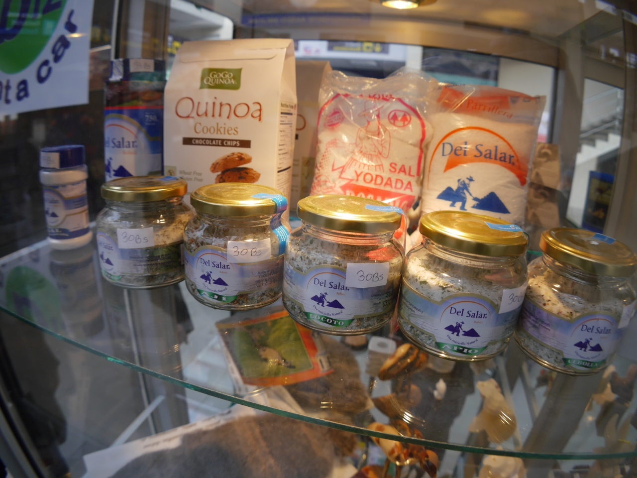 小さな売店みたいなお土産屋が1~3軒あります。ここでは水とかチョコレート等菓子を買って、小額のボリビアーノ通貨を入手しましょう。私はここでウユニ塩湖で取れた食用の食塩を購入しました。