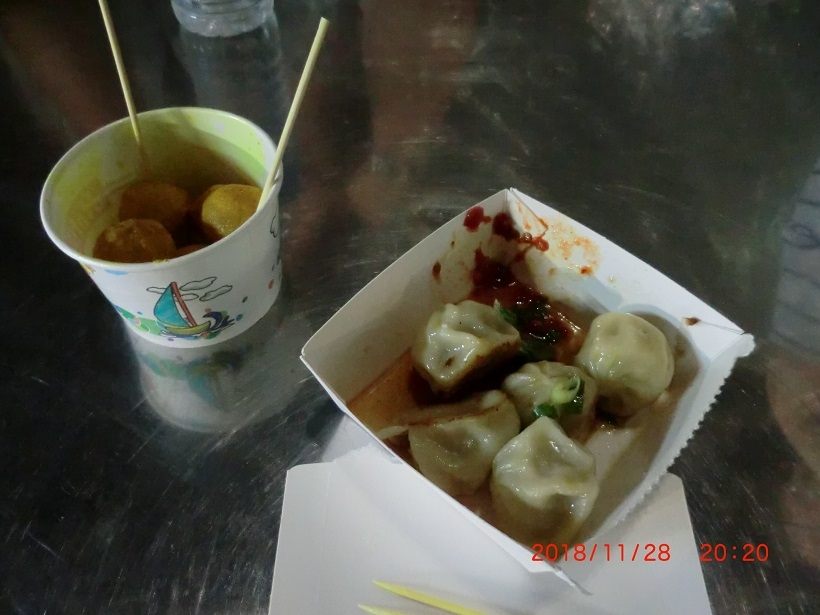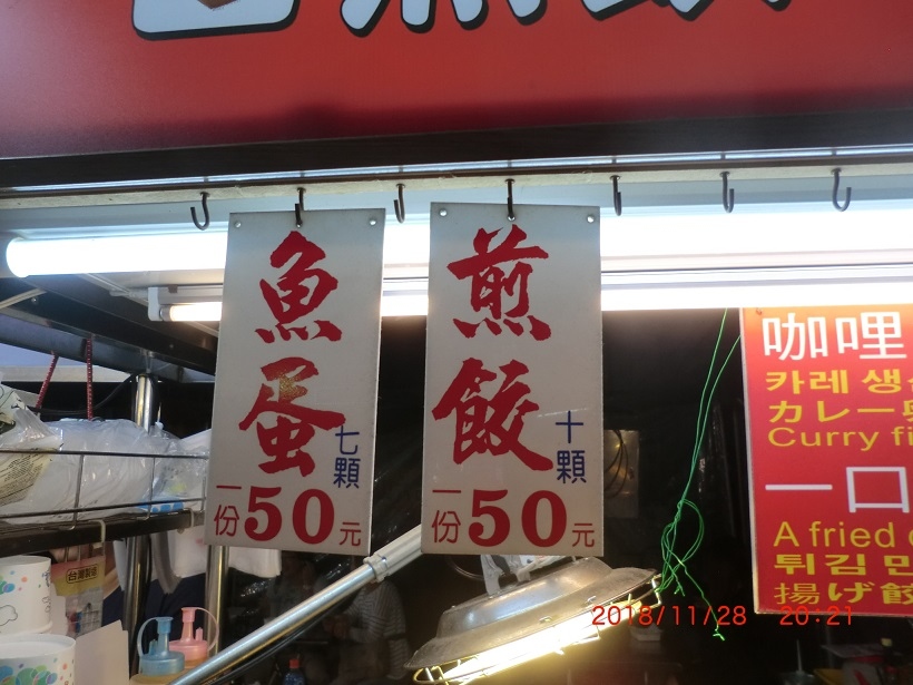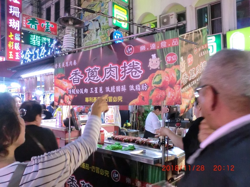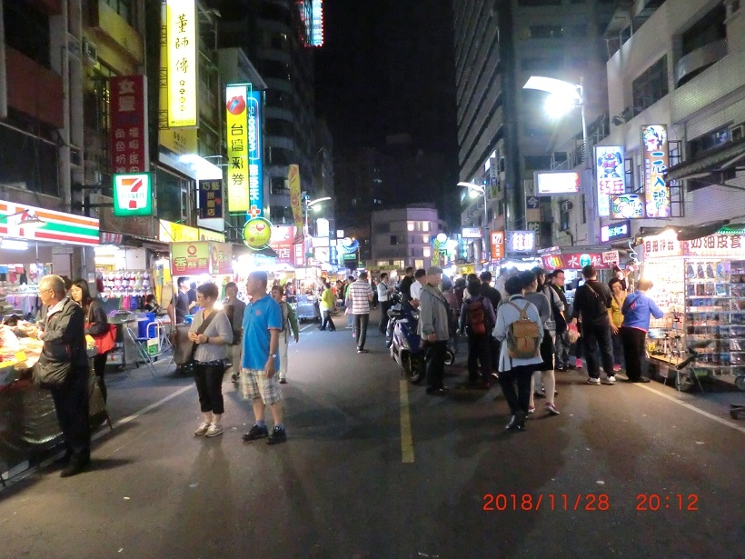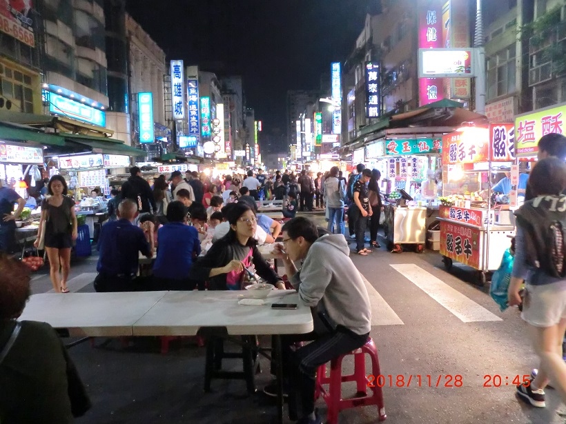 団体旅行(ツアー)で高雄観光して夕食を食べてホテルに着いて部屋に入り荷物を置いてすぐに向かいました。高尾に行ったら夜市に行かないと意味が無いと思い行きました。幸いにも地下鉄1駅で美麗島駅、駅から5分で夜市に着きました。小さな露店が沢山あり何を食べるか迷いました。歩きながら食べる人、椅子に座って食べる人。揚げ物、焼き物、蒸し物、スイーツ、アクセサリーの店など沢山あります。日本のお祭りの露店風ですが、これが毎日なんですからいいですね。夜市大好きです。