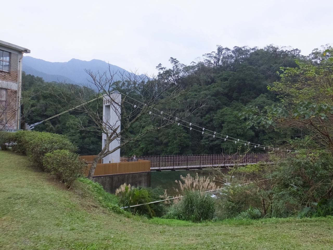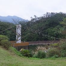 ここから遊歩道が整備されていて、十分大瀑布などに行くことができますが、散策しない人も、建物から見える緑の中の吊橋はぜひ眺めて行ってください。