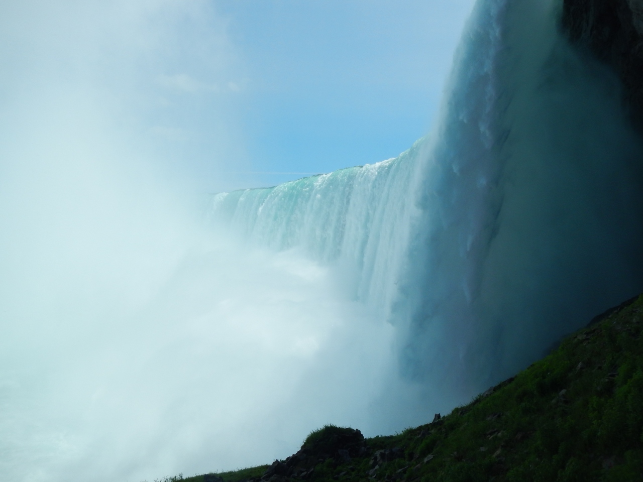 入り口でカッパを貸してくれて、まずはカナダ滝を真横から見ました。