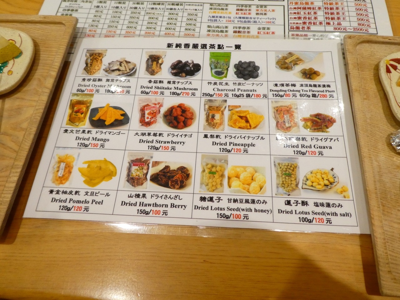 台湾茶の買い物です。カウンターに座って、お茶試飲しながら、お茶菓子・ドライフルーツ試食しながらの買い物です。