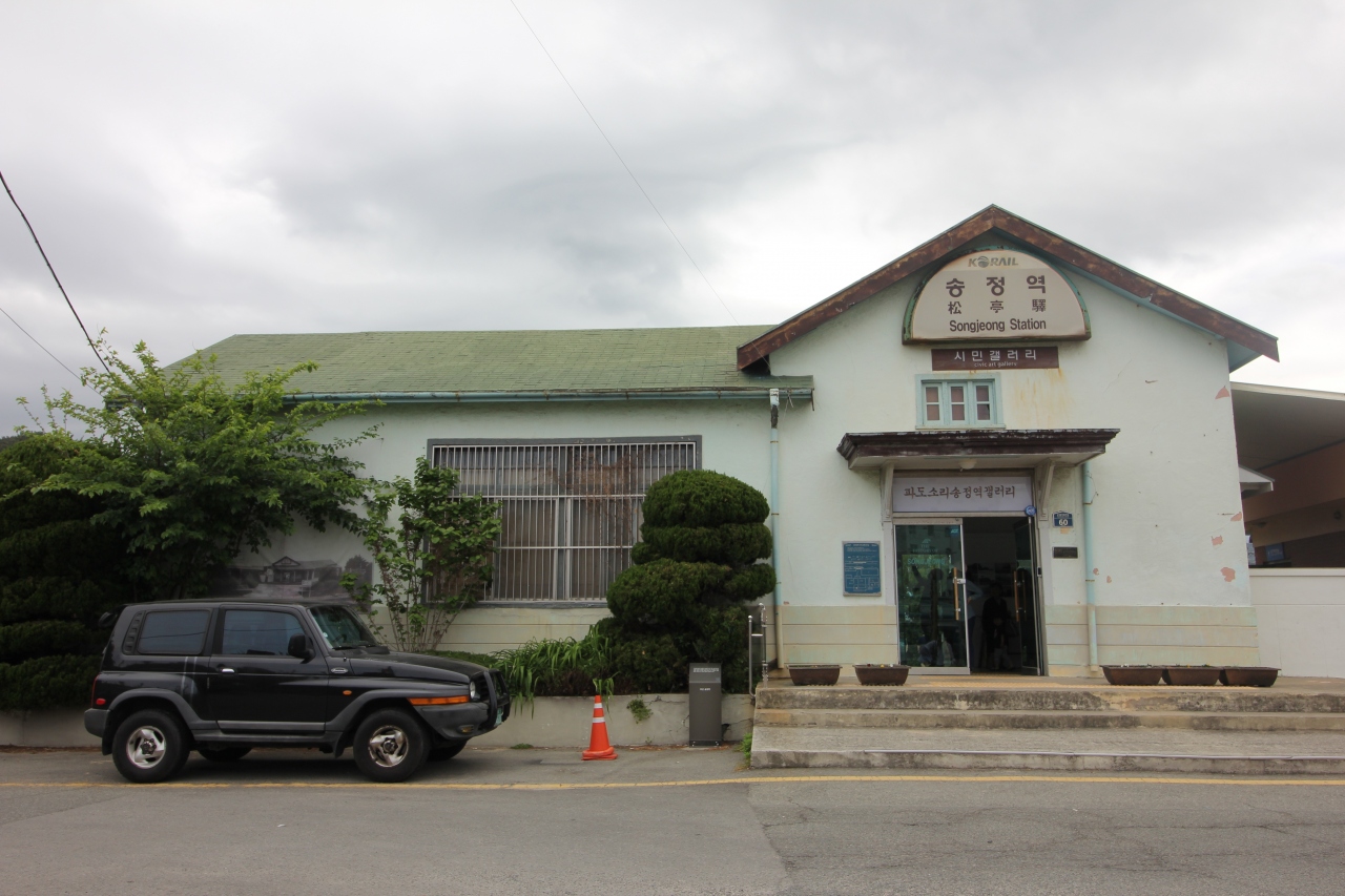 新線に付け替えられた東海(東海南部)線の廃駅です。今は古い駅舎と駅構内には線路も残されています。文化財的な駅舎で、中はギャラリーのようになっていました。ここから海雲台まで海沿いの旧線の廃線跡は遊歩道として整備されています。