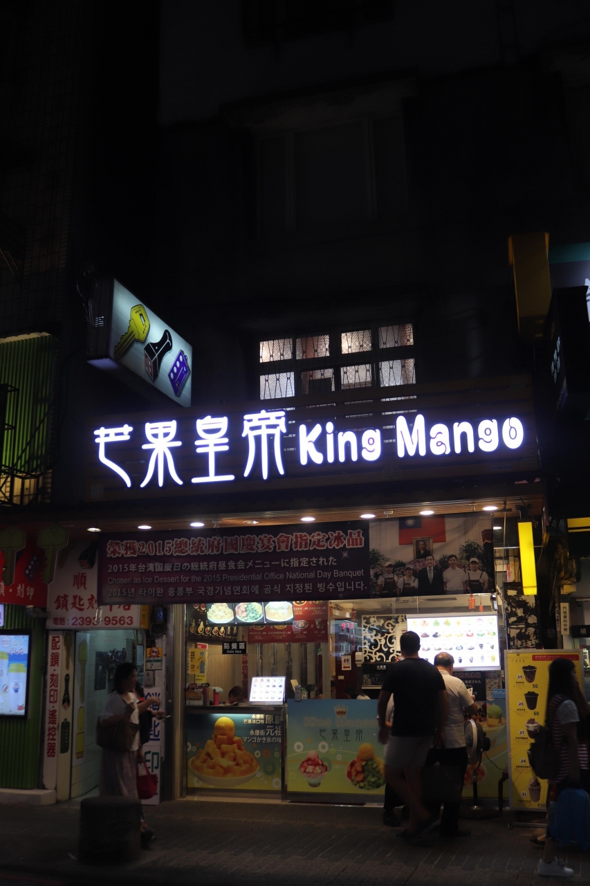 永康街にあるかき氷スイーツのお店です。飲んだ後、遅くまでやっていたので入店しました。定番の「新鮮芒果雪花冰」をいただきました。かき氷にカット芒果、マンゴーシロップとアイスクリームが載ってます。夜遅くでも蒸し暑い台北で一瞬の清涼感。インスタ映えもします。