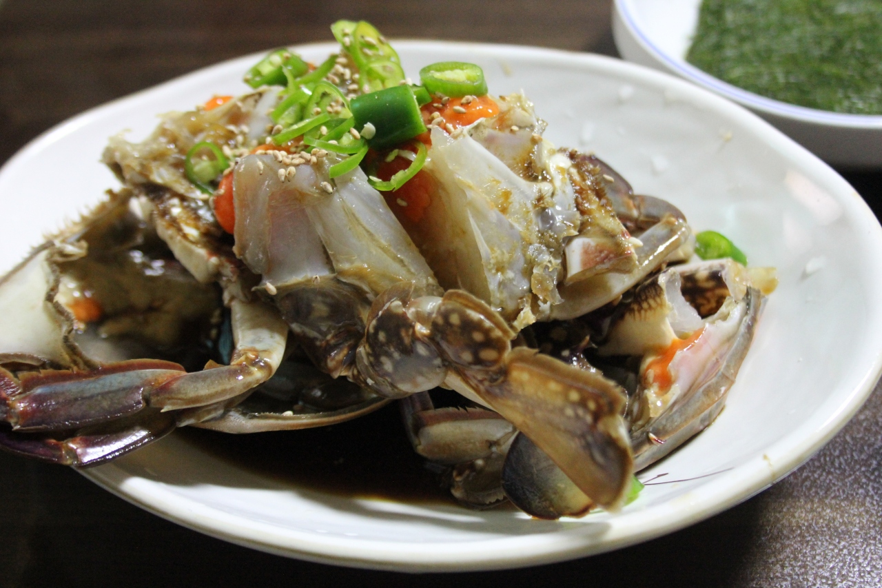 ソウルのケジャンの食堂です。いつも混んでおり、予約をしたいのですが、電話もわからず、夕方早めに行きました。席につくと、オーダーも聞かれずに、料理がならびました。夢中でケジャンをしゃぶりました。美味い。