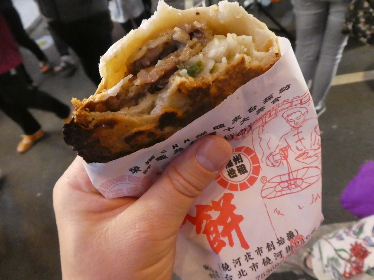 行列。でも7~8分。パリパリの肉まんのようなもの。