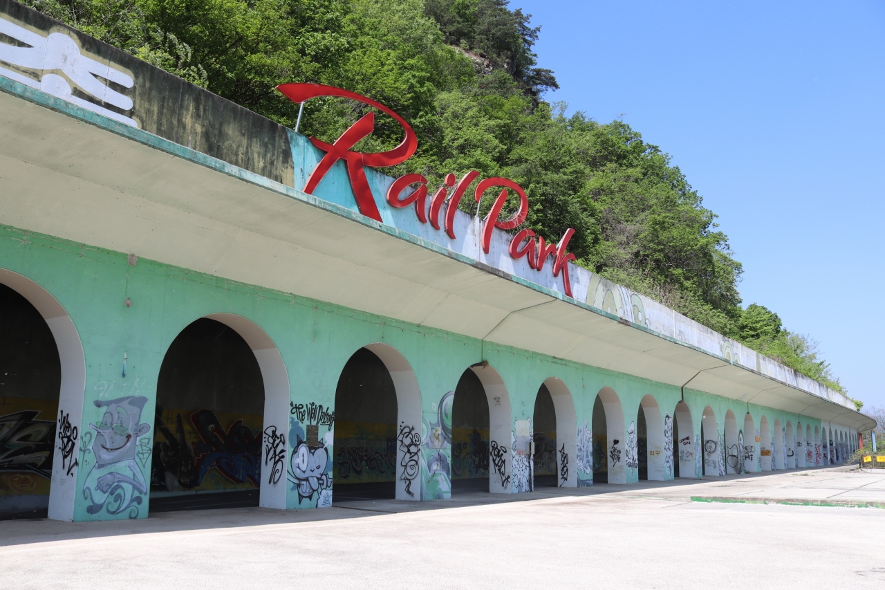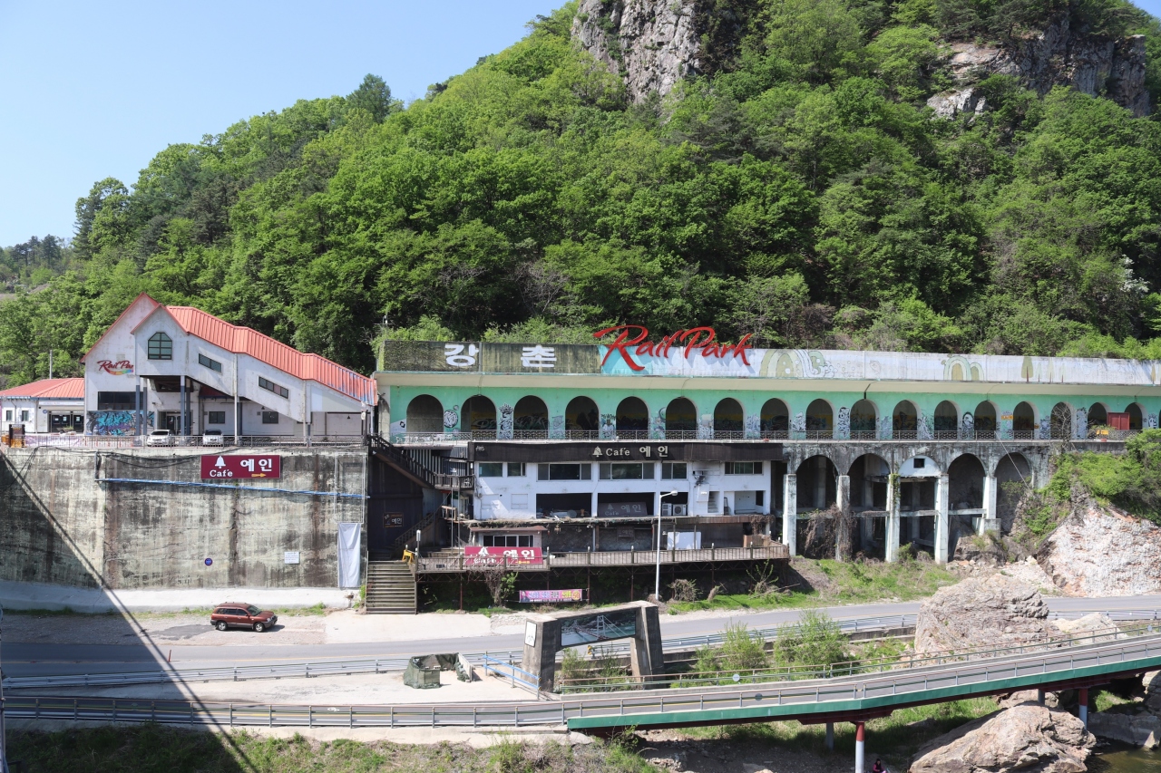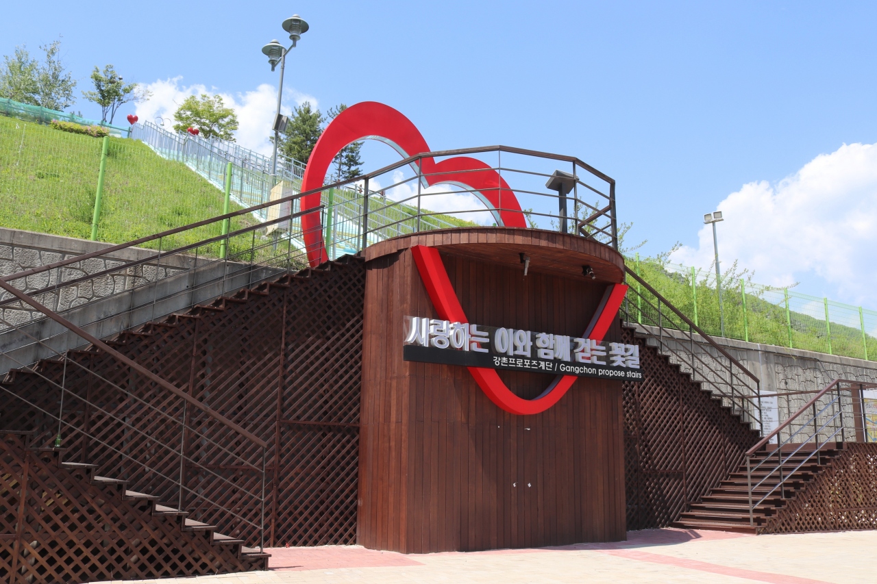 京春線の途中駅です。元々は北漢江沿いにありましたが、新線に変更され、南側に新しい駅ができています。旧駅は川沿いにアーチが続く印象的な駅でした。今は江村レイルバイクの終着駅になっています。新駅前にはプロポーズ階段なるものがありました。