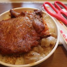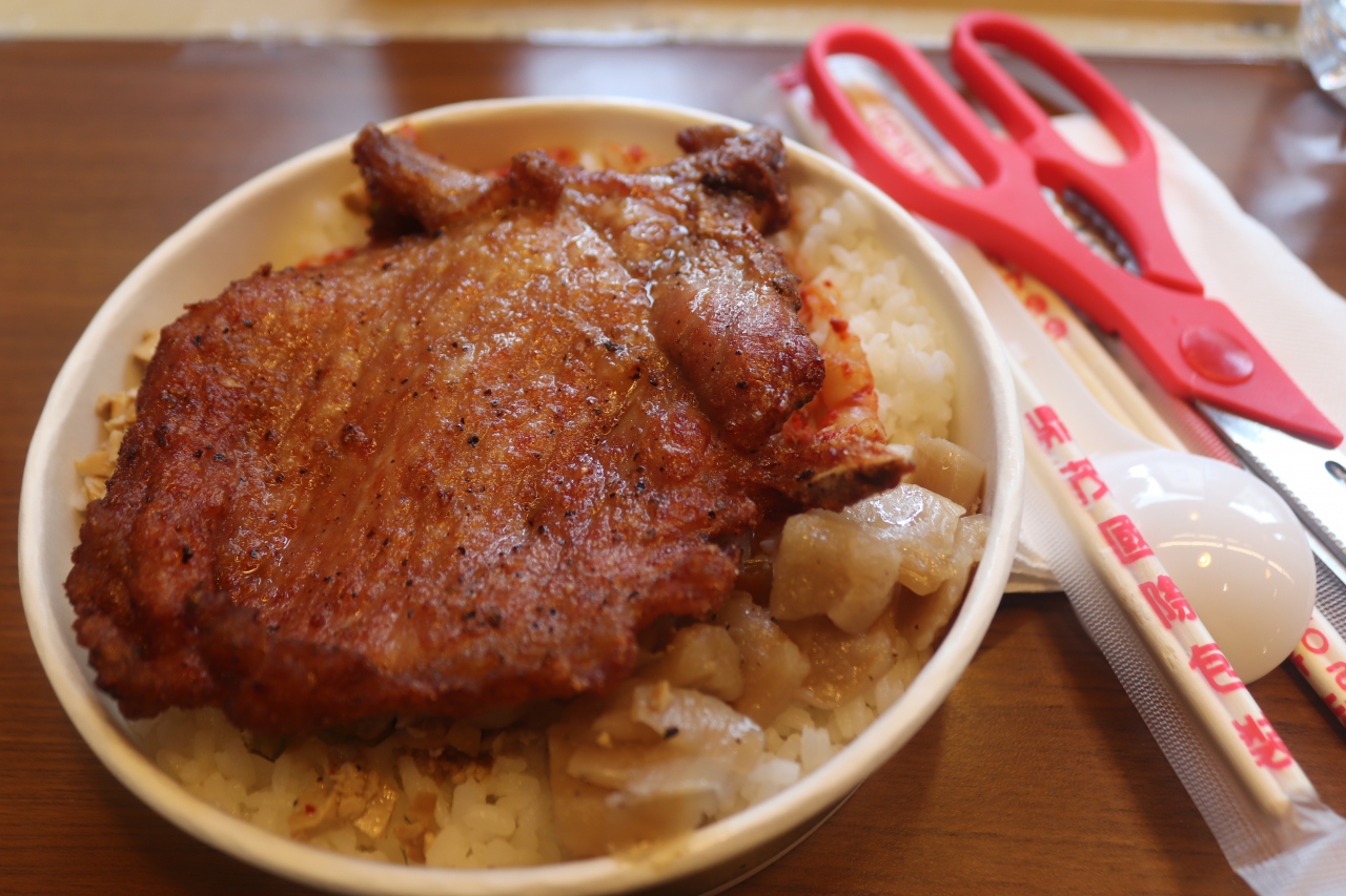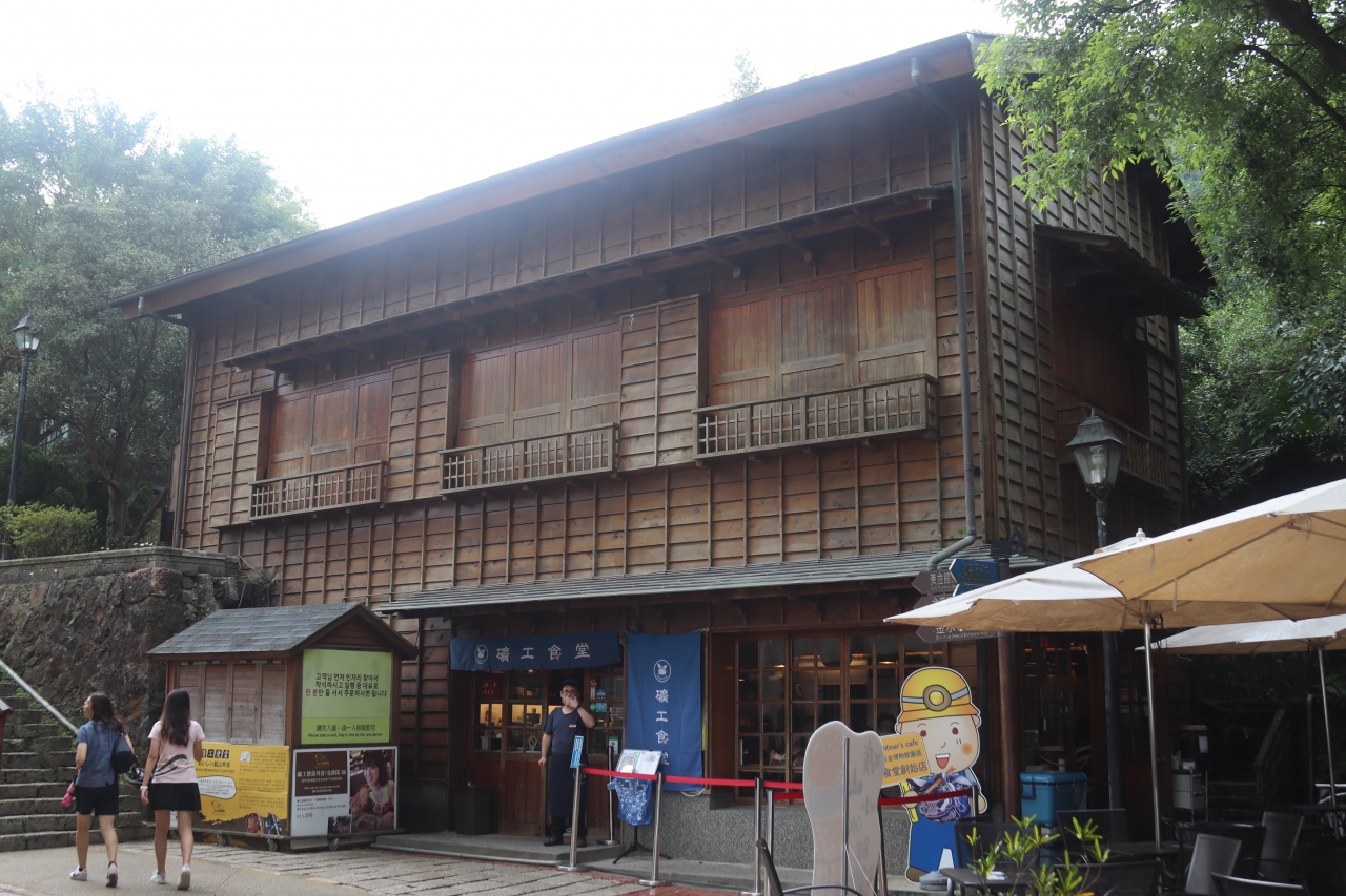 金瓜石の黄金博物館エリア内にあるかつての炭鉱食堂をイメージした食堂です。食堂というよりカフェのイメージです。ここではかつての鉱夫の弁当をイメージした弁当をいただけます。排骨がメインでハサミで切っていただきました。
