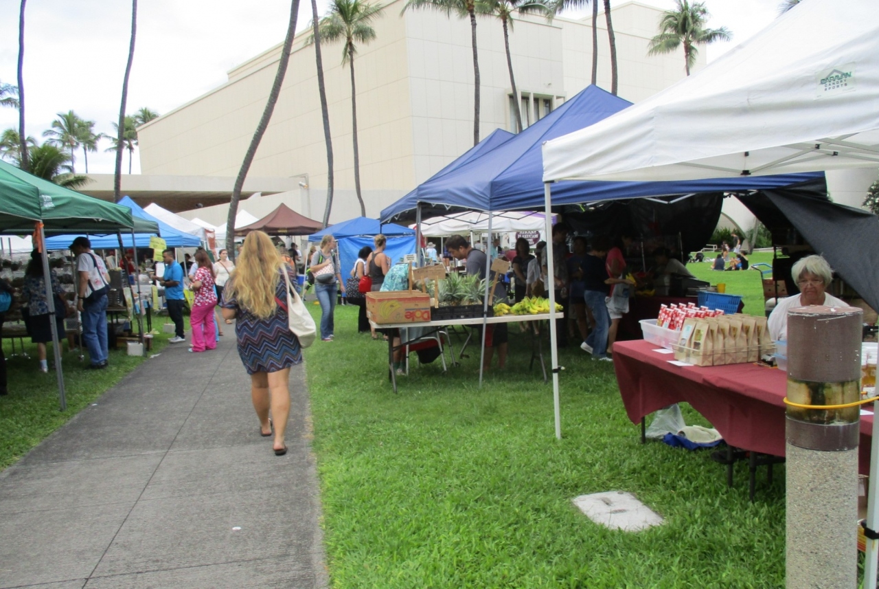 ワイキキに到着したときに、毎週水曜日の夕方にカカアコ近くのニール・ブレイズデル・センター内のブライズデル・コンサートホール前の芝生エリアで開催されているホノルル ファーマーズ マーケットをのぞいてみました。