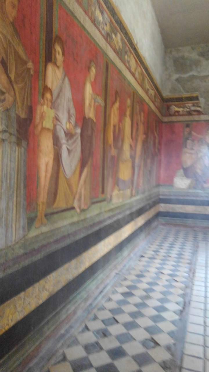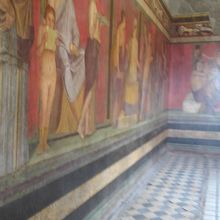 ポンペイ遺跡から少し離れた所に独立した建物として残っています。中庭やいくつかの部屋があり、「秘儀の間」と呼ばれる部屋が最大の見どころです。紀元前一世紀半ばの作品が鮮やかな色彩とともに残っています。ディオニュソス信仰の秘密の儀式が描かれていますが、見学当時は何が何だかわからず、ただ「ポンペイの赤」に打ちのめされた感じでした。後に「大塚国際美術館」にて、ゆっくり説明を聞き理解を深めました。「ポンペイの赤」は忘れられない色です。
