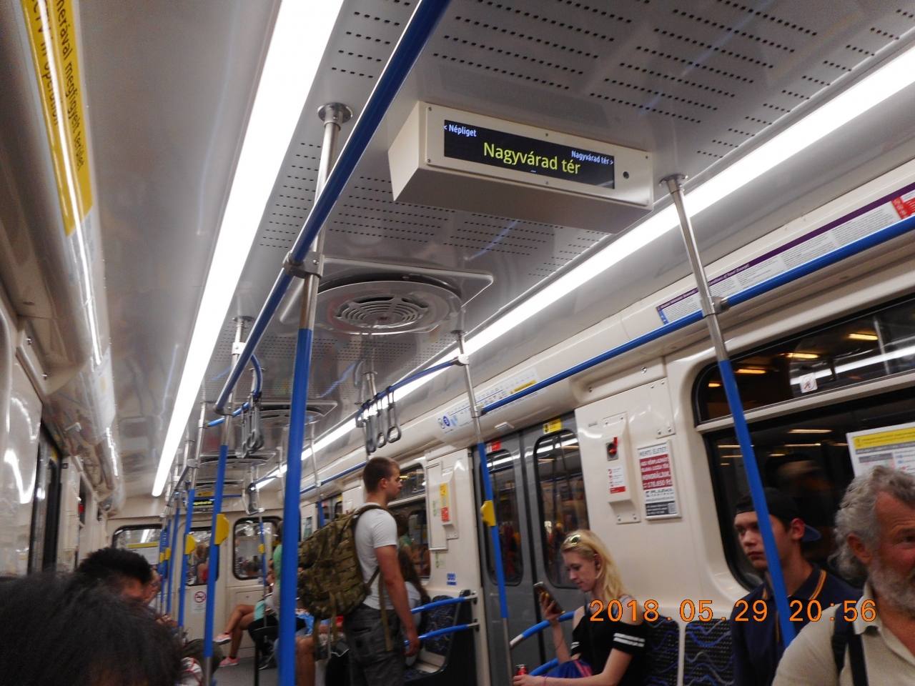 最初は、ブダペスト国際空港(リストフェレンツ国際空港)から市内への移動に利用しました。私たちが宿泊するホテルは中心部から少し離れていて、メトロ利用が便利だったので、200Eバスとメトロを組み合わせました。車内は空いていたし、車両もきれいでした。