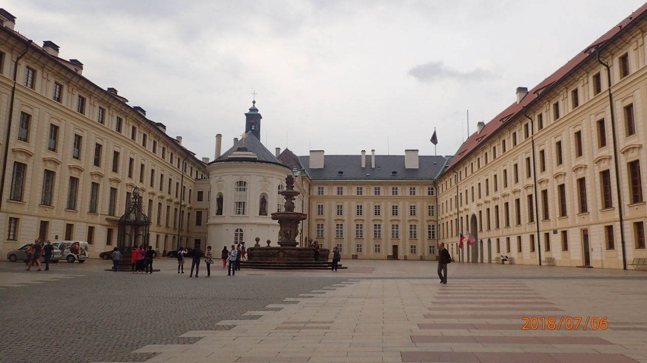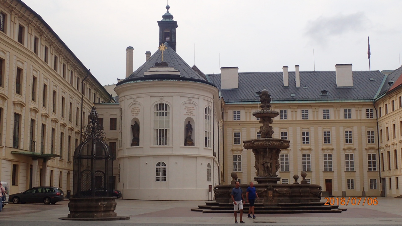 中庭となっていますが、日本人の感覚では大広場のようで、広場の端に建てられています。聖十字架礼拝堂と王宮美術館の建物の前にあります。