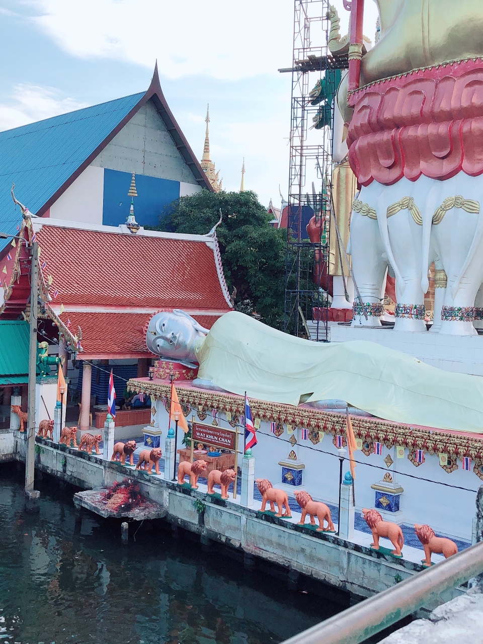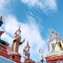 ワットパークナム近くの橋を渡ってすぐの寺院です。朝行ったのですが、人はほとんどいませんでした。日本では聞き慣れぬ音楽が流れる中、きらびやかな仏像や置物を見学することができました。なかなかカオスな空間でした。ワットパークナムとはまた雰囲気の違う寺院なので、セットで訪れてみるといいと思います。