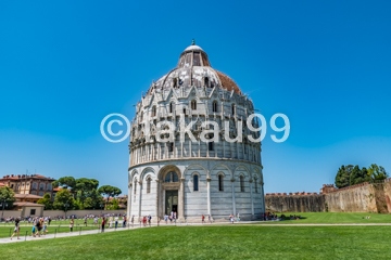 フィレンツェから日帰りでピサに観光に行きました。ピサ駅からは市内バスで行きました。ピサで一番人気の観光名所のピサの斜塔のすぐそばに建っています。歴史的建造物の洗礼堂はとても大きくて立派です。在りし日のピサの繁栄がしのばれます。