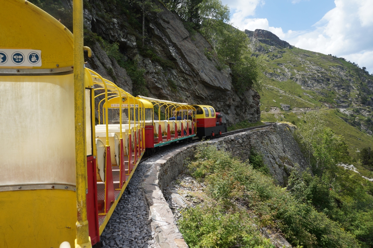 ピレネー山脈の標高2000mを走る観光列車で、行程は約55分。乗り場は山奥にありますが、公共交通機関のみを利用して行くことができます。遊園地のアトラクションを思わせるカラフルでオープンな車両で、窓ガラスなどがないため、澄んだ空気と風を感じながら美しい景色を楽しむことができました。高所恐怖症の人には少々スリリングかも。到着駅の周りは山道のハイキングコースになっていて、気軽に登山が楽しめます。