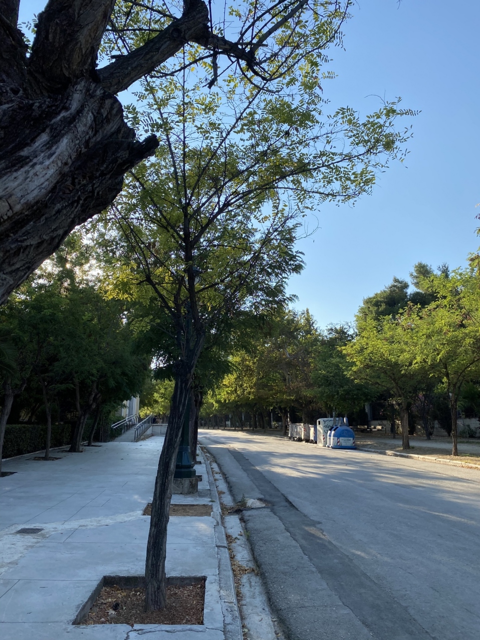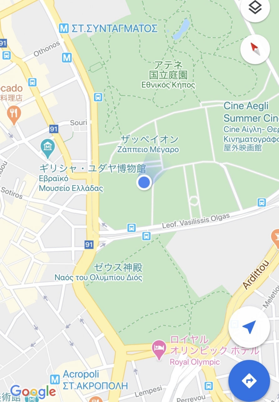 国会議事堂や政府関係の多々ものが周辺に多々あるため、道路は舗装され警察官も常に巡回しているので安全エリアです。シンタグマのエリアはスリ、やひったくりもあり危険なので、ここは癒しエリアです。