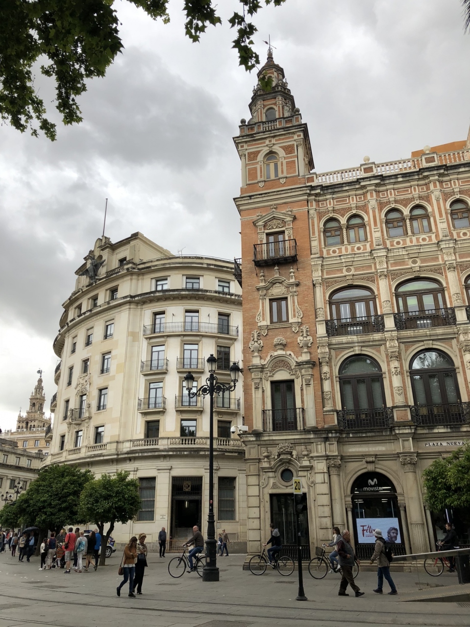 セビリア市庁舎前の広場で、バスやトラムが停車発着する場所です。これといって観光するものはありませんが、ちょっとした雑貨店やカフェなどがあり、観光客と言うよりは地元の住民が息抜きや会話をしに集まってのんびりしている姿が観られました。散歩に良いでしょう。