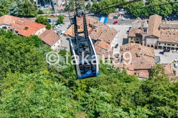 ボローニャから鉄道とバスを乗り継いで、日帰りでサンマリノへ観光に行きました。下の町から山の上の旧市街まで一気に登れるフニクラ (ケーブルカー)があります。リミニからバスで行く場合は利用する必要はないです。