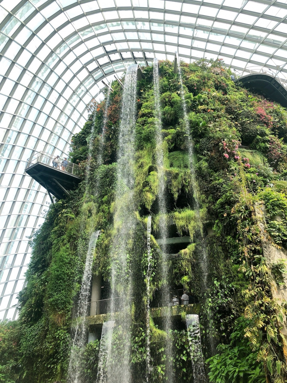 人工の滝は圧巻で、上から続いている道を歩くのもとても気持ちがよくて、おすすめスポットです。ただ、上にあがるエレベーターに登るのに結構待つため、時間に余裕を持った方がよいと思います。個人的には、スロープを降りた後の最後の方の道がとてもきれいでおすすめです。